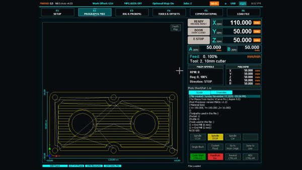 That's when the MASSO controller came into being. A dedicated embedded CNC controller was designed from the ground up on a custom-built hardware platform that included all the inputs and outputs to control machine axis, spindles, accessories, etc. All the required hardware is built into the system and the user only needs to connect an monitor screen through the built-in VGA port and a standard USB keyboard. With a unique dedicated architecture, the machine can be controlled without requiring any dedicated PC.